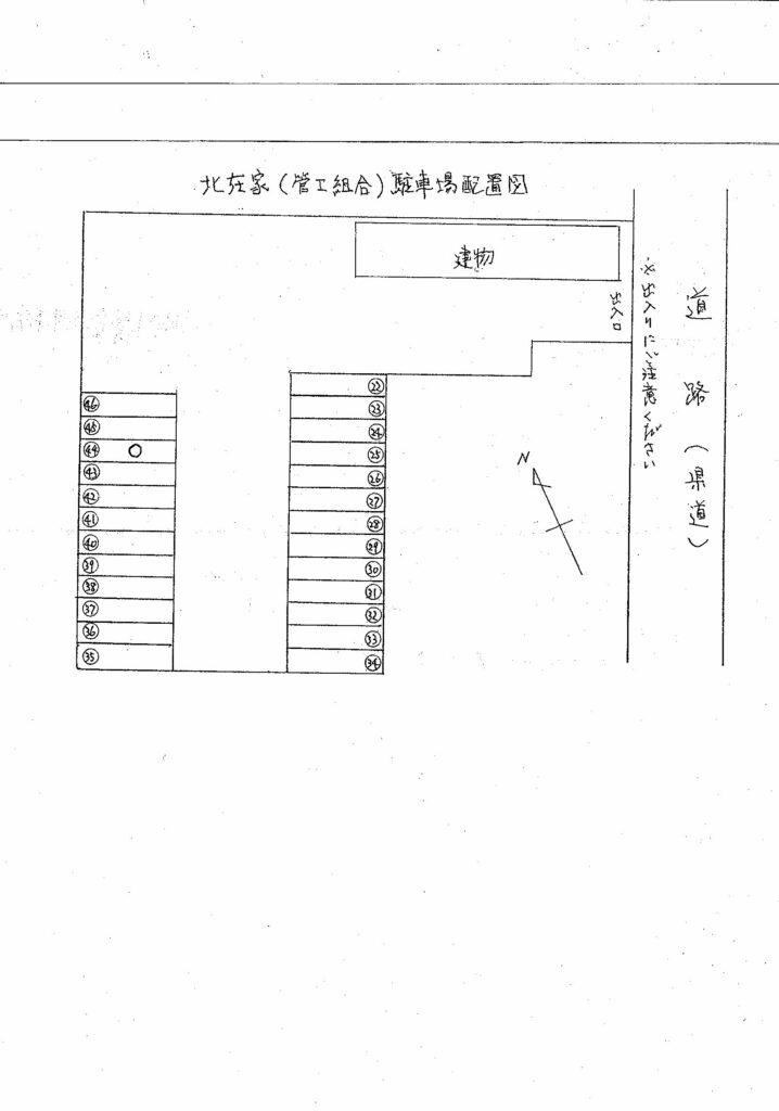 加古川市管工事業協同組合様の敷地内にお入りいただき、奥へ進んで左手方向が月極駐車場のエリアとなっており、そこの44番の区画が当事務所の専用駐車場です(2025年12月1日から利用可能です)。